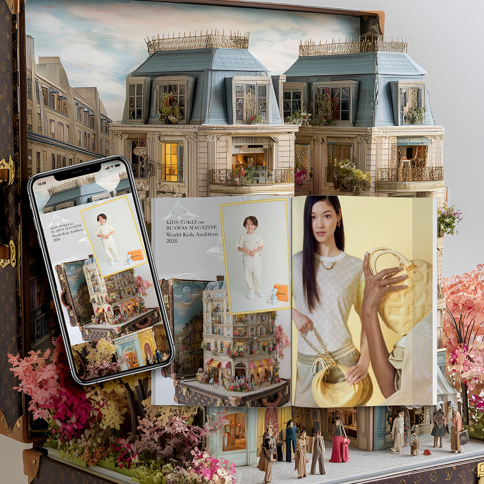 Kids-Tokei photo competitions are more than contests — they are exclusive editorial experiences designed to nurture young models’ creativity. Styled with luxury brand clothing, toys, bags, and accessories — all purchased to realize this vision — each shoot is professionally produced. Photography: Kids-Tokei Studios. Creative Direction: RUNWAY MAGAZINE. The RM 185 participation fee covers only the actual costs incurred: top Japanese photographers, stylists, and assistants caring for your child on the day, as well as the creative teams in Paris and New York producing the editorial, videos, and final works. There are no corporate sponsors.